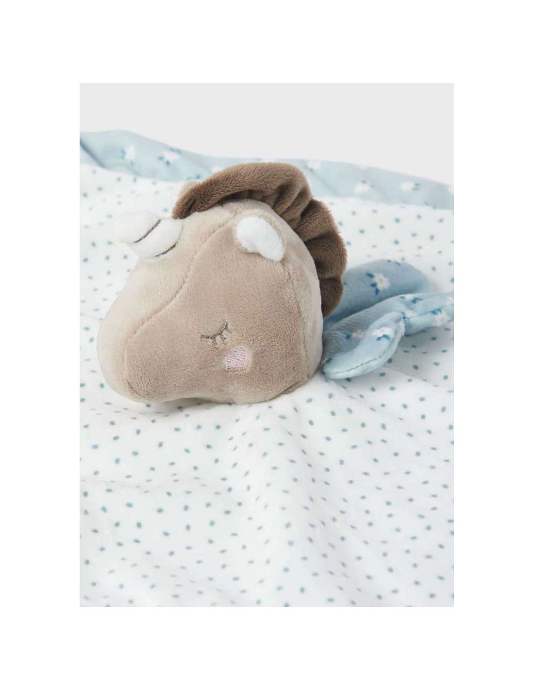 Dulce peluche para bebé con manta incorporada de textura suave, que será el compañero perfecto para sus ratos de juego y descanso. Este artículo se presenta en una caja de la línea Newborn ideal para regalar en ocasiones especiales.