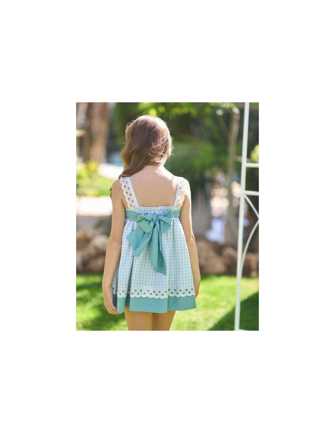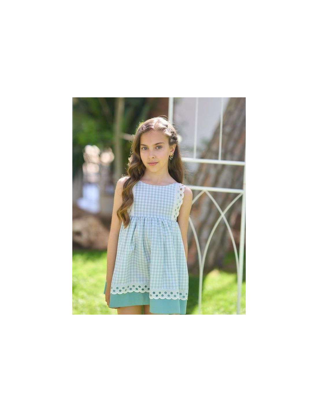 vestido niña vichy verde agua