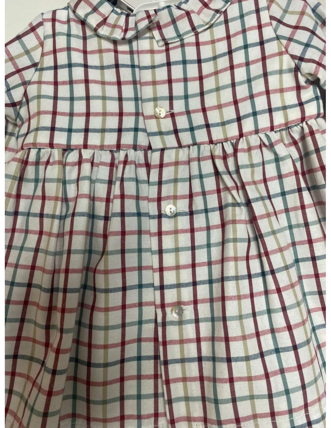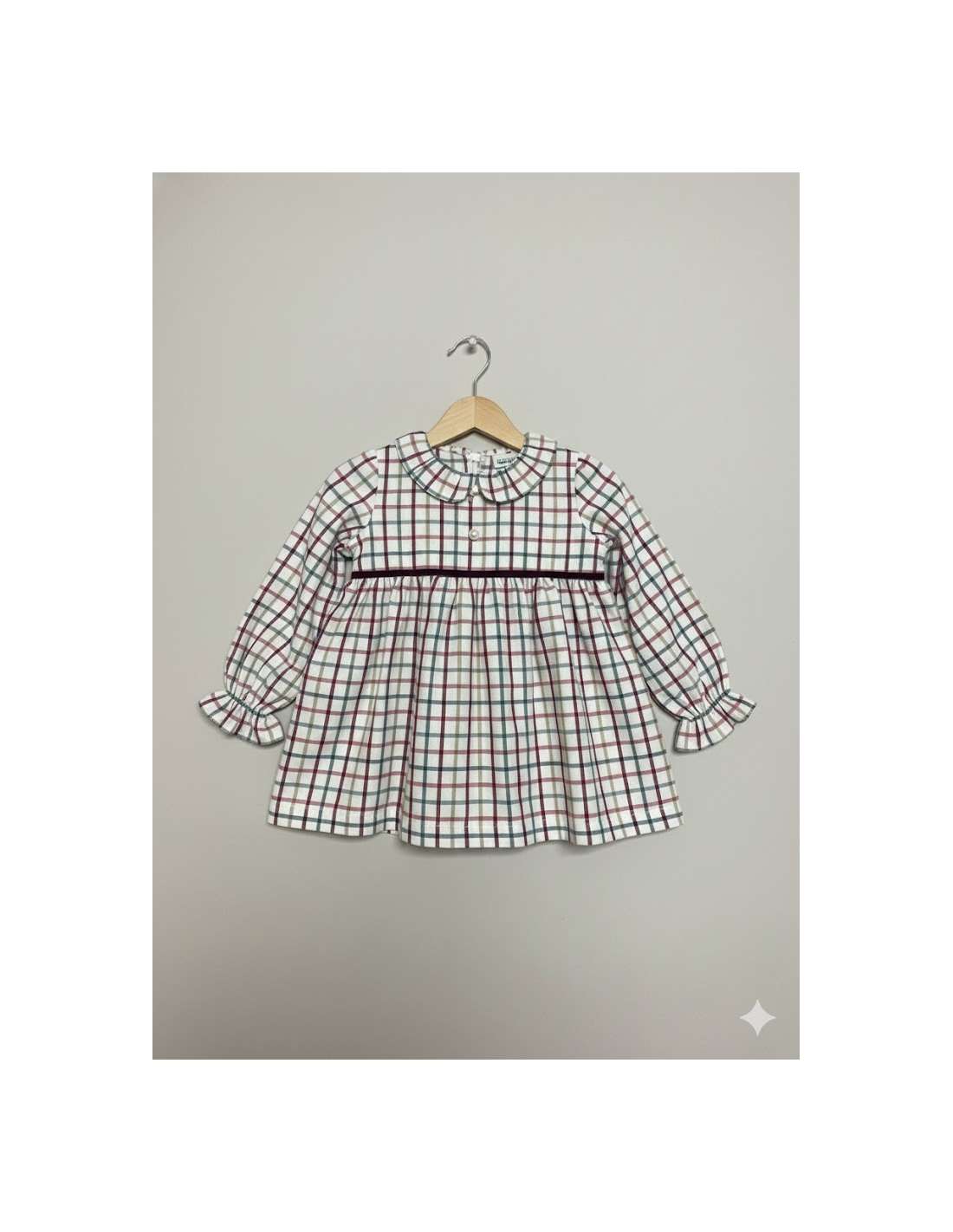 Este es un encantador vestido de bebé de estilo clásico y tradicional, perfecto para la media estación o invierno, con un aire festivo y acogedor.