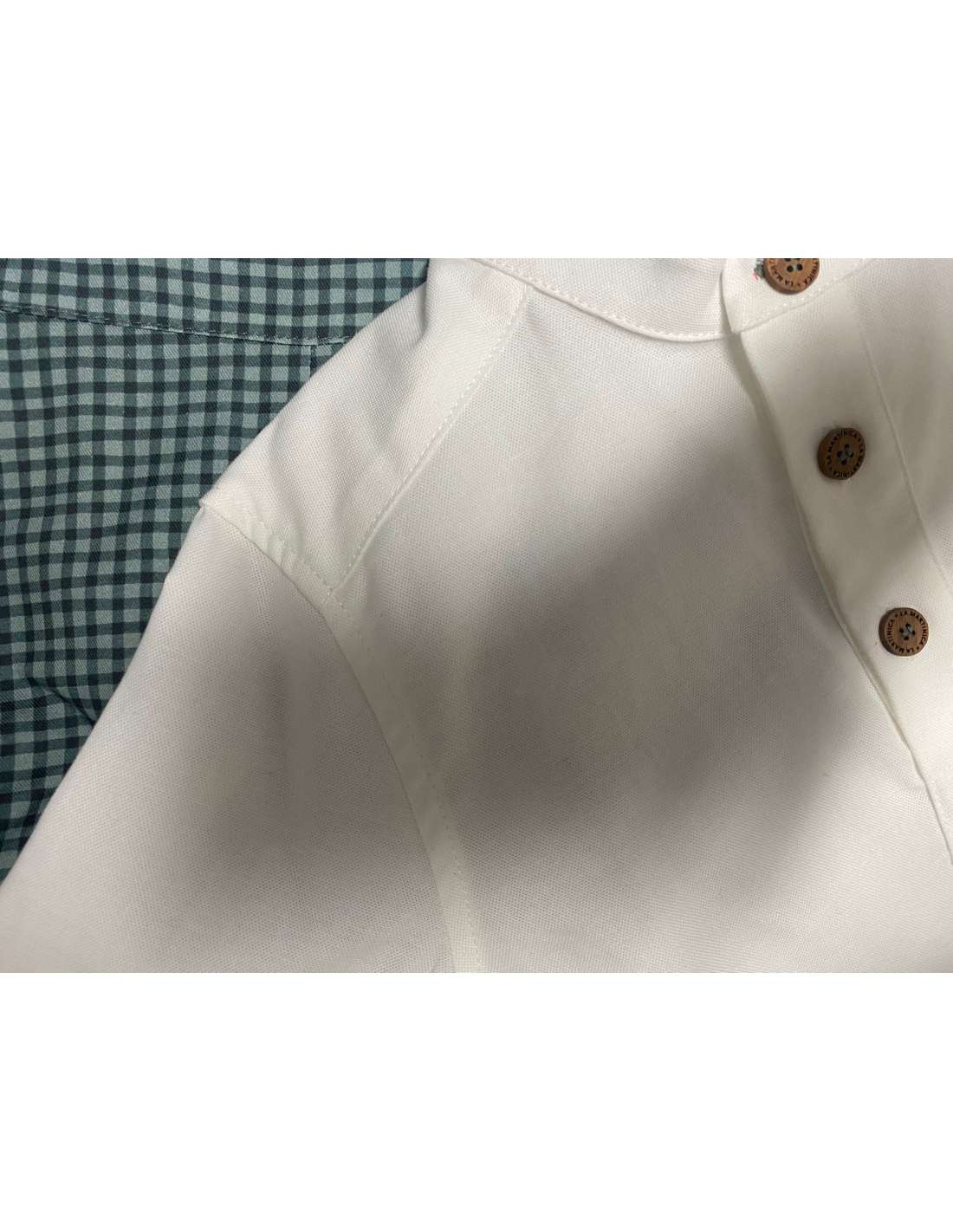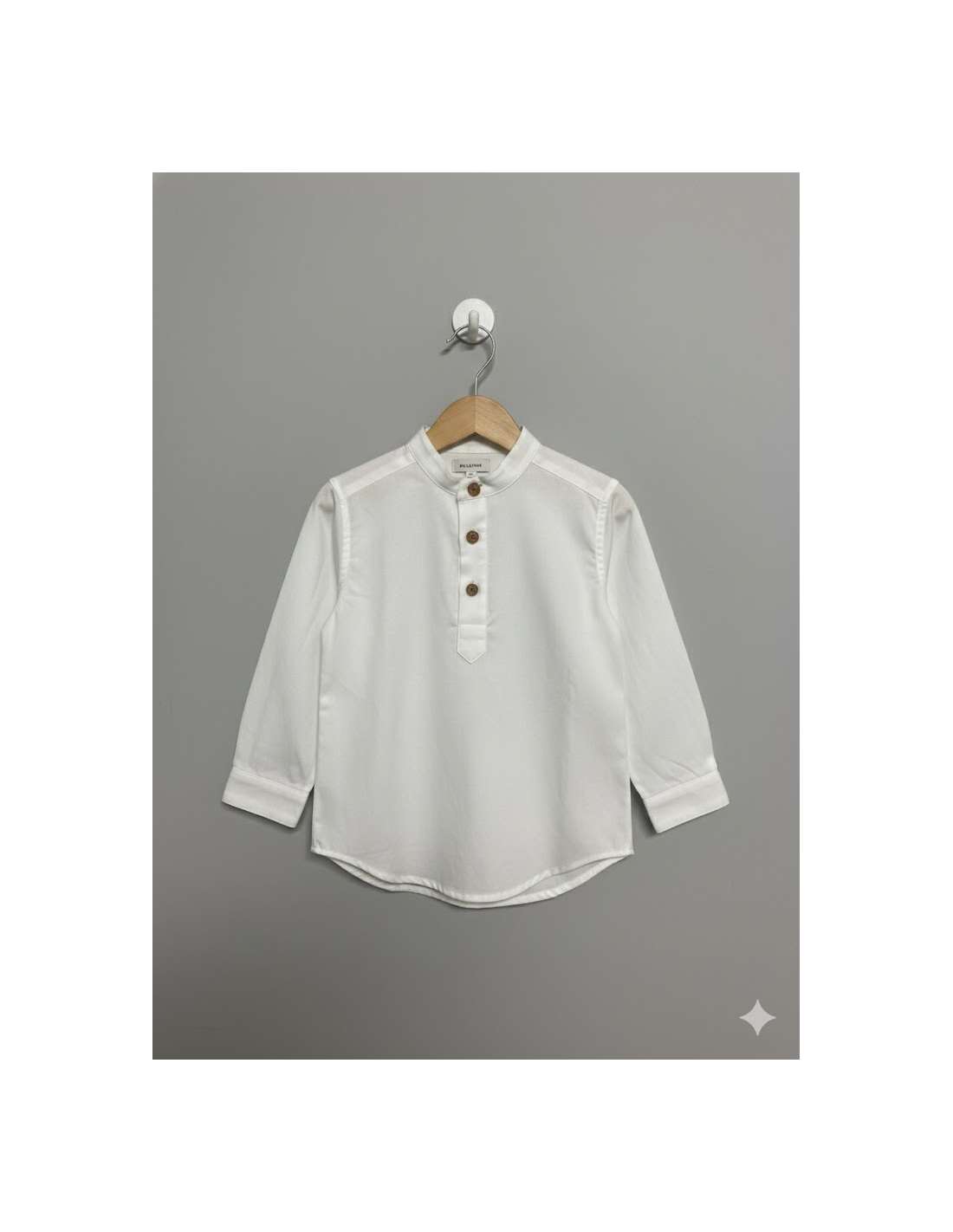 Este es un conjunto de dos piezas (camisa y bombacho) de estilo clásico y rústico, perfecto para un look de bebé elegante y cómodo.