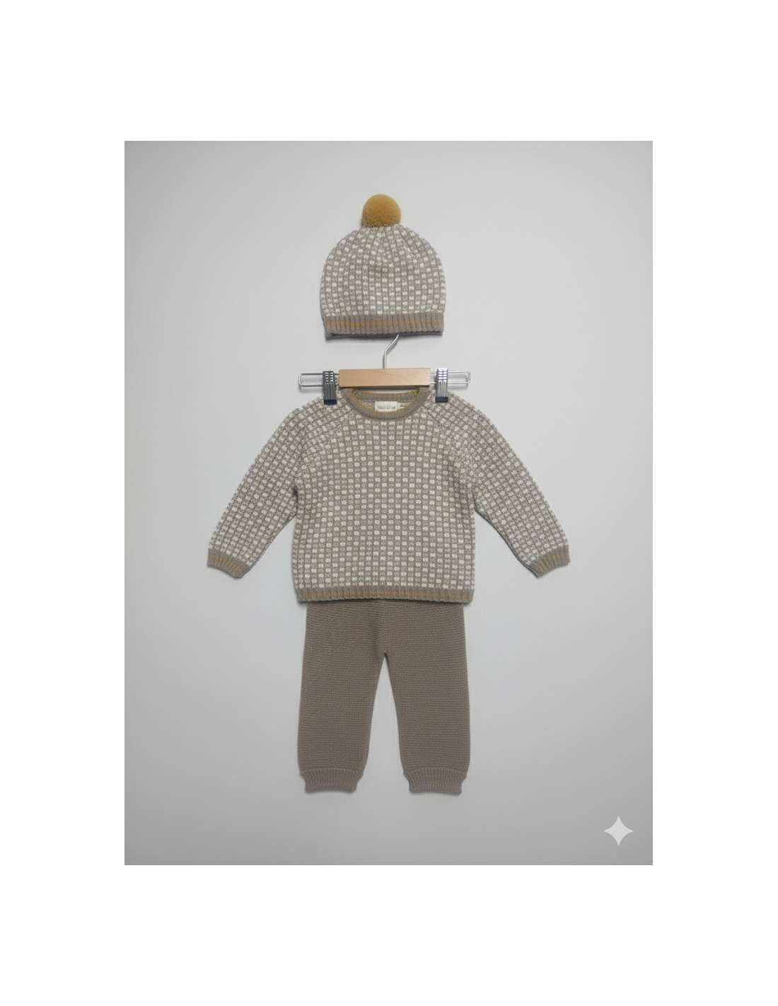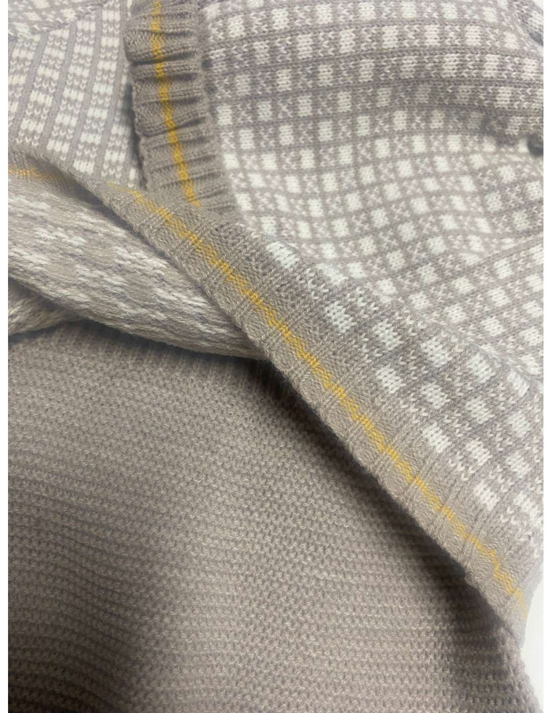 Este es un encantador conjunto de dos piezas (jersey y cubrepañal/bombacho) de estilo clásico e infantil.