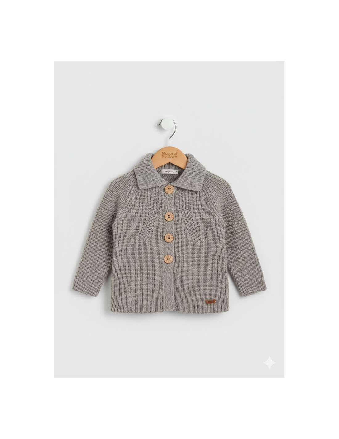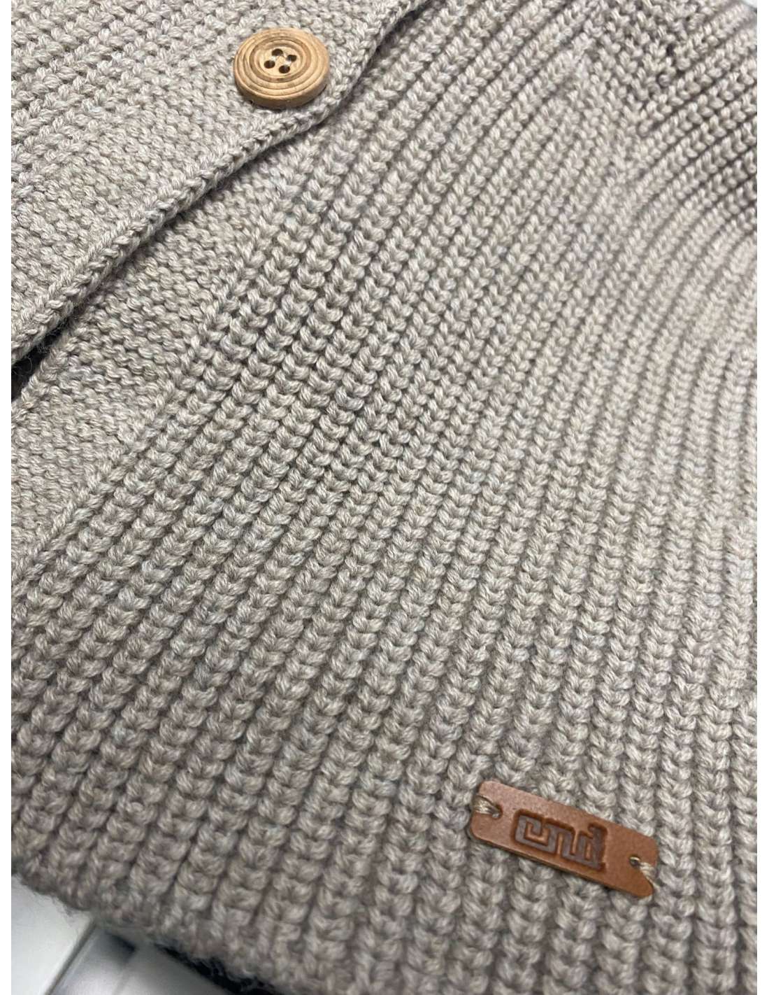 Abrigo de lana merino en punto perlado con cuello vuelto y botones.