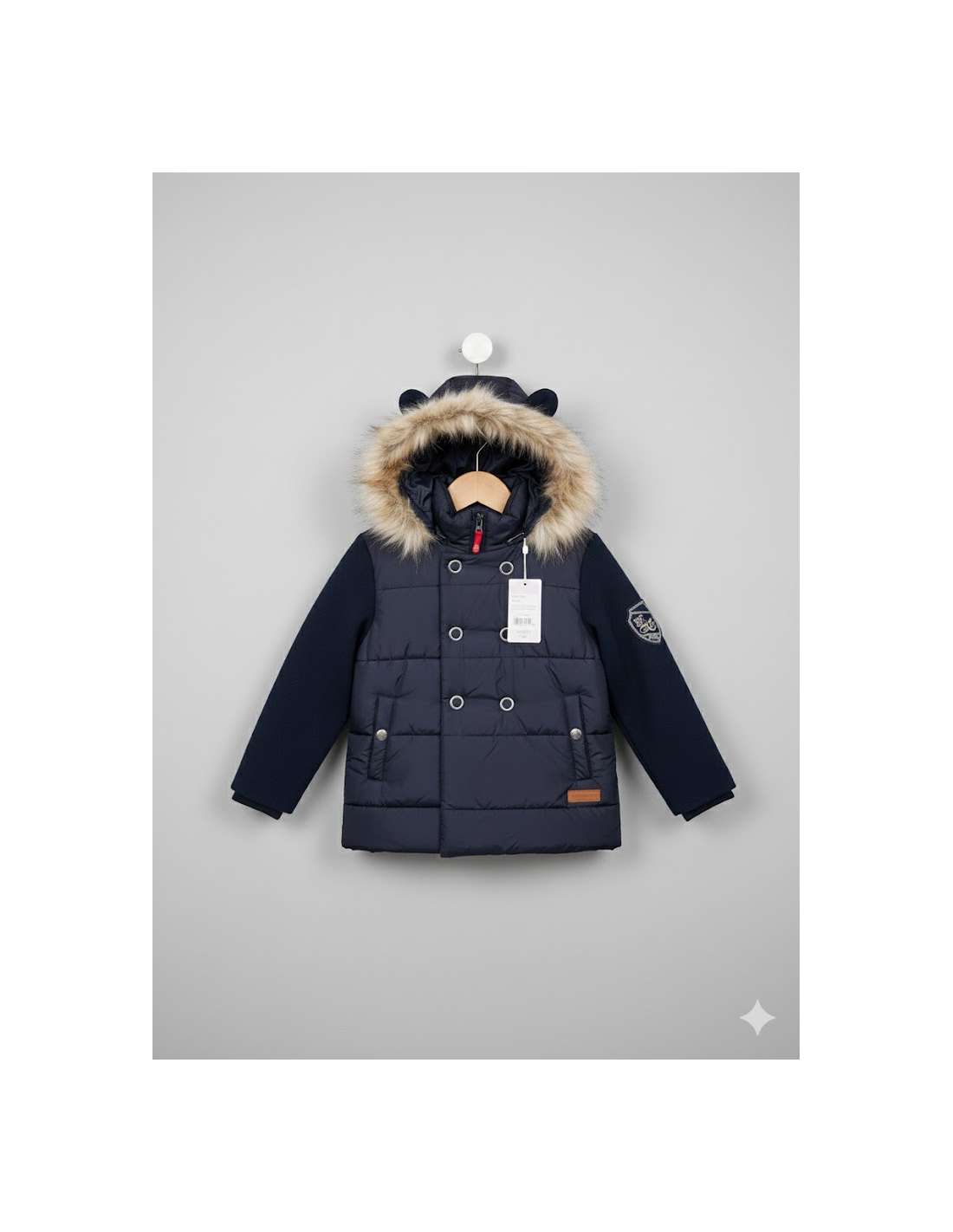 Este es un abrigo o chaquetón de bebé de corte tradicional, muy abrigador e ideal para el invierno.