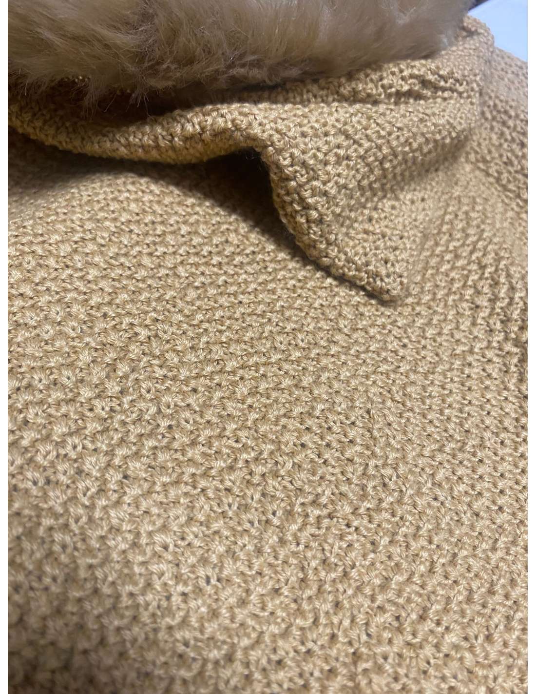 Este es un jersey o suéter de punto para bebé que destaca por su diseño artesanal y su apariencia sumamente acogedora, ideal para un estilo clásico y dulc