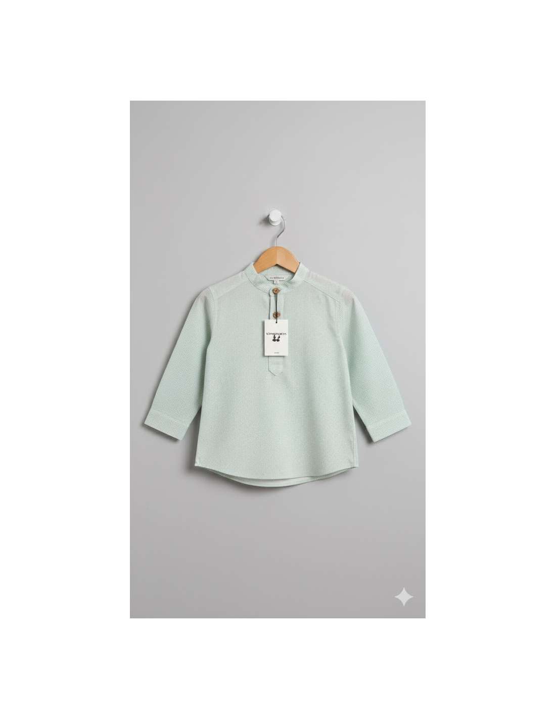 Esta camisa infantil es una prenda de estilo clásico y distinguido, que destaca por su diseño tradicional y su confección cuidada, ideal para ocasiones especiales o eventos formales.