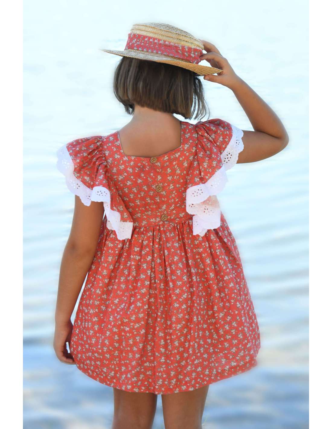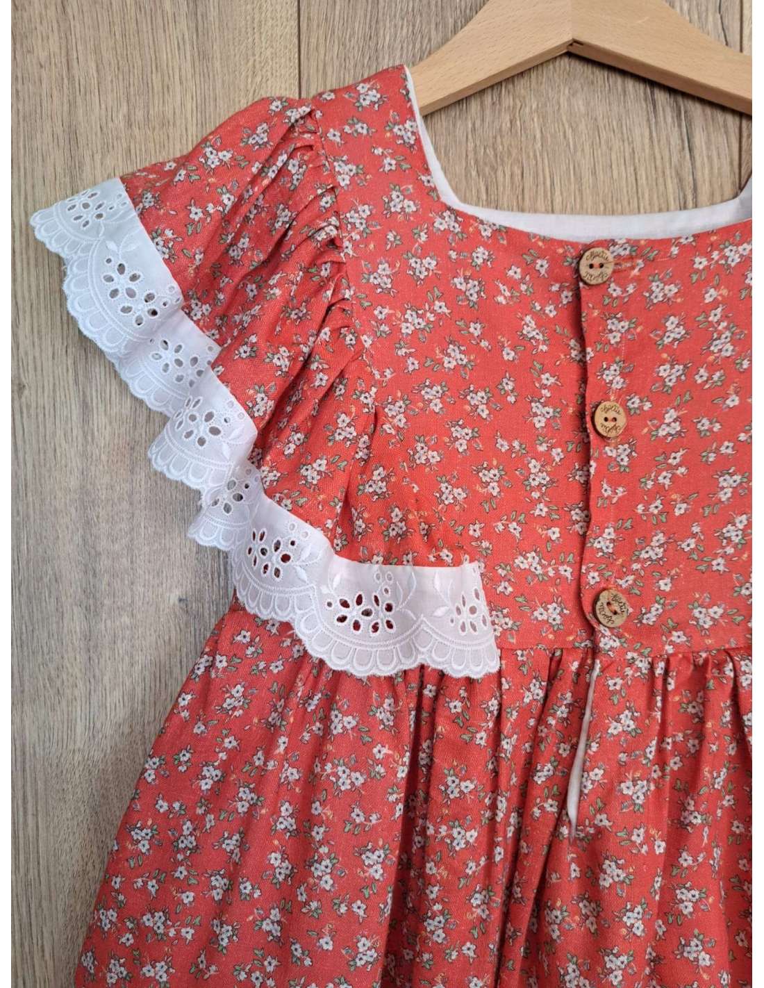 VESTIDO ESTAMPADO DE FLORES CON PUNTILLA EN LA MANGA