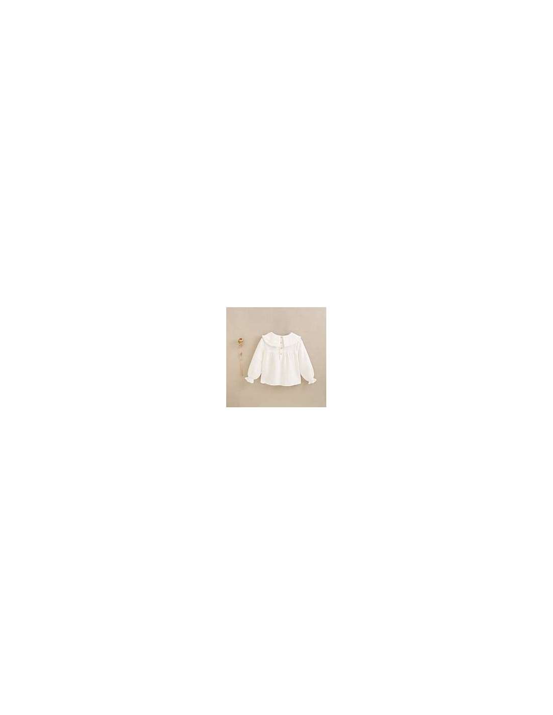 Blusa manga larga de niña en blanco con cuello Peter Pan