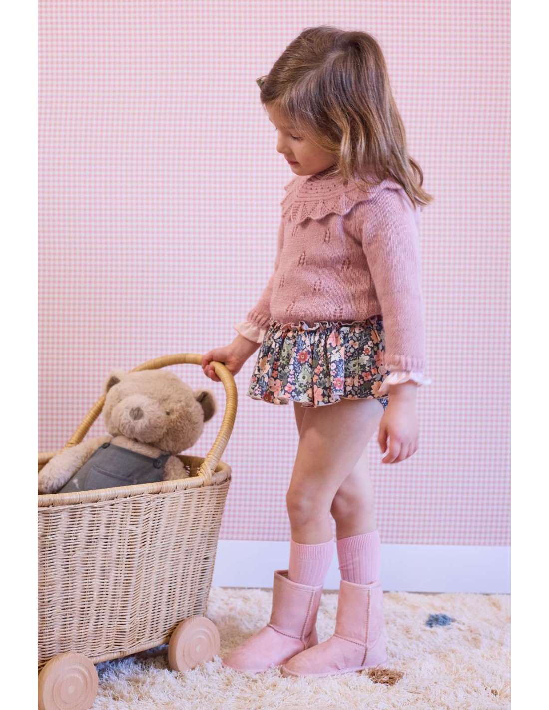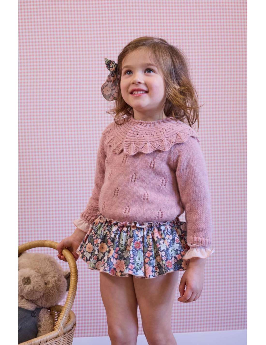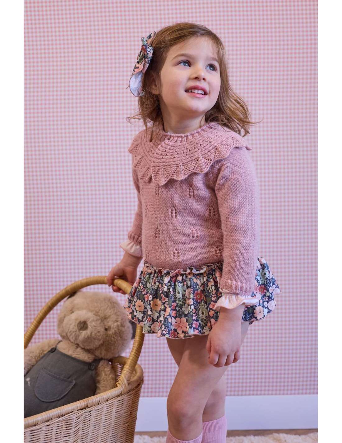 BRAGA VOLANTES FLORES Y JERSEY DE PUNTO ROSA