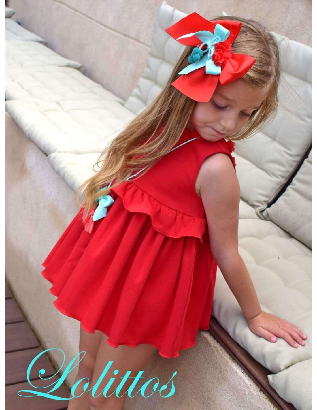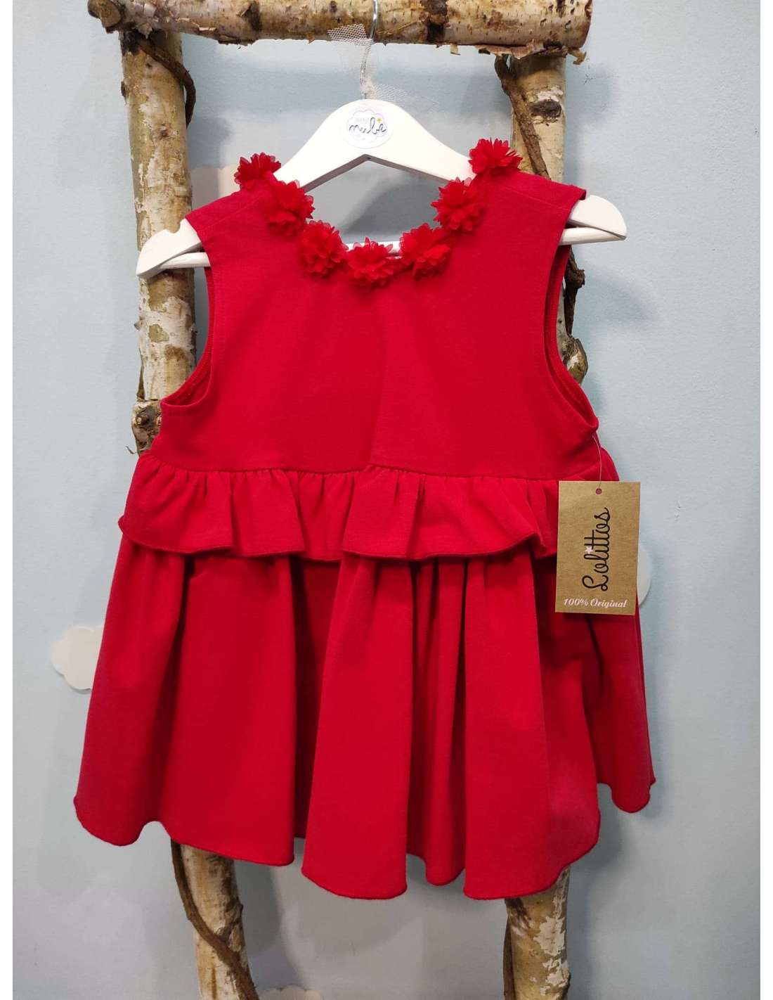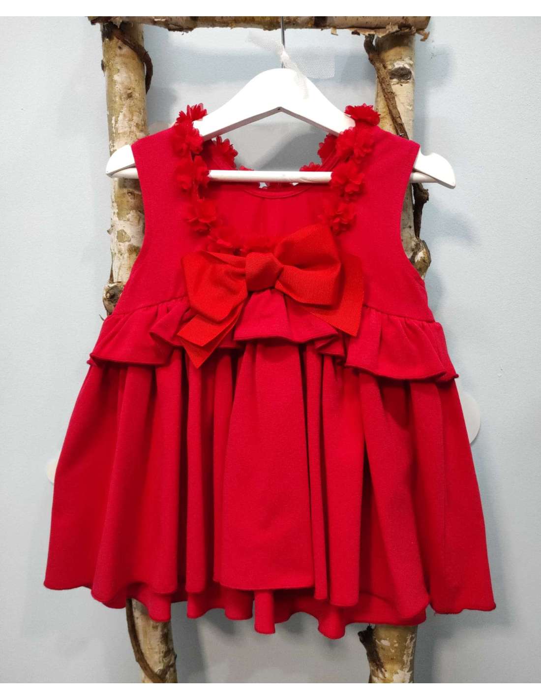 Jesusito con braguita en tejido de algodón de alta calidad. Adorno en cuello de flores que continúa por la espalda haciendo la espalda escote cuadrado. al final de escote se adorna con un gran lazo del mismo color que el vestido.