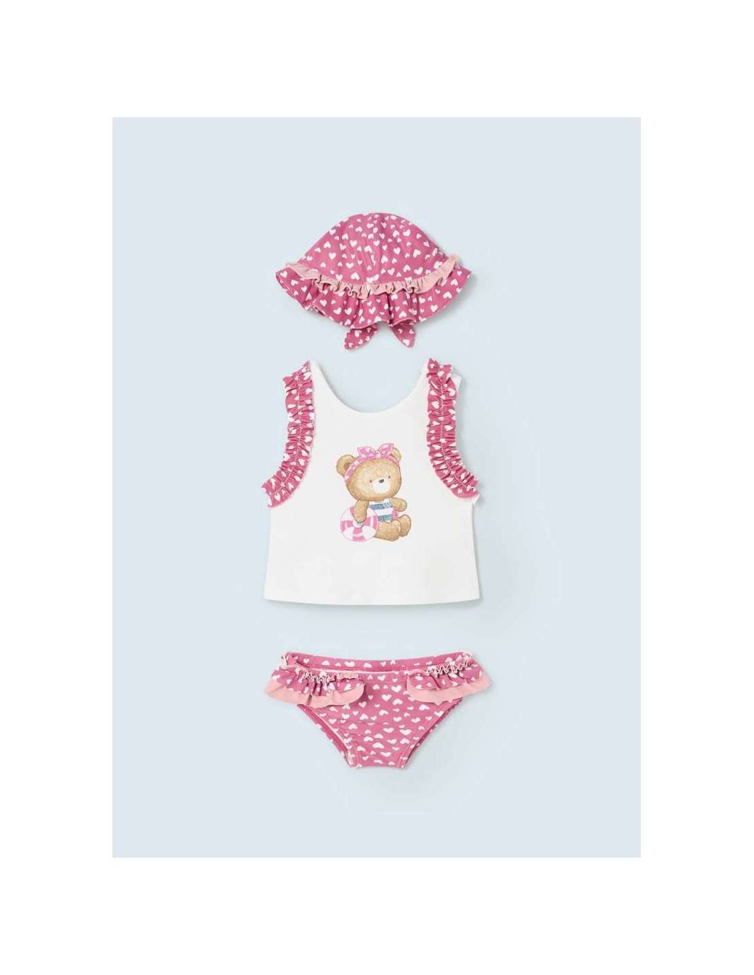 Divertido conjunto de baño para recién nacido de tres piezas piezas a juego. Disfrutarás de los días de verano con un look fresco y relajado.